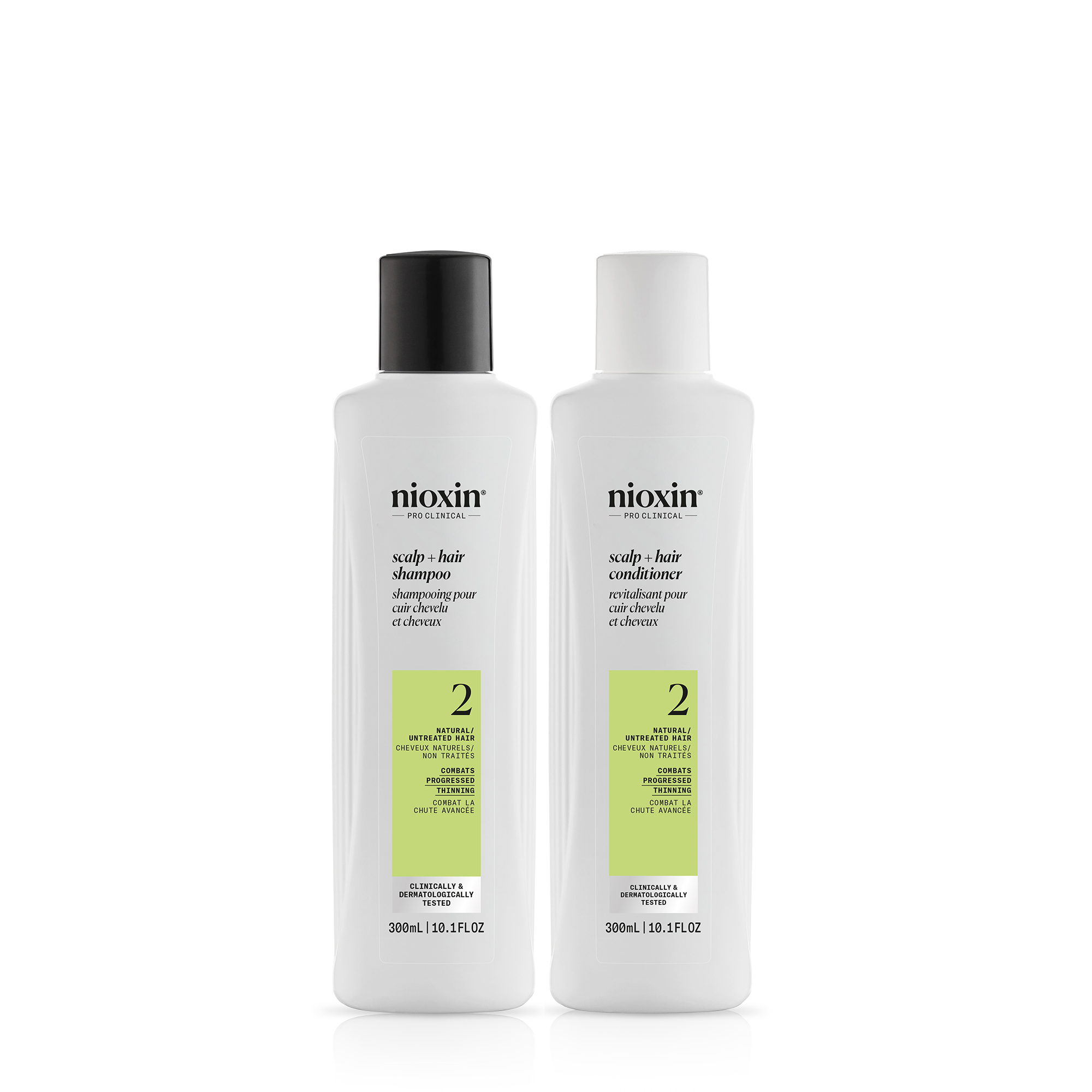 Apply Nioxin System 2 Shampoo onto wet hair and scalp. Gently massage and rinse thoroughly with water. After using Nioxin System 2 Shampoo, gently massage Nioxin System 2 Conditioner into the scalp and hair, focusing on the ends. Leave on for 1-3 minutes for optimal results. Rinse thoroughly.