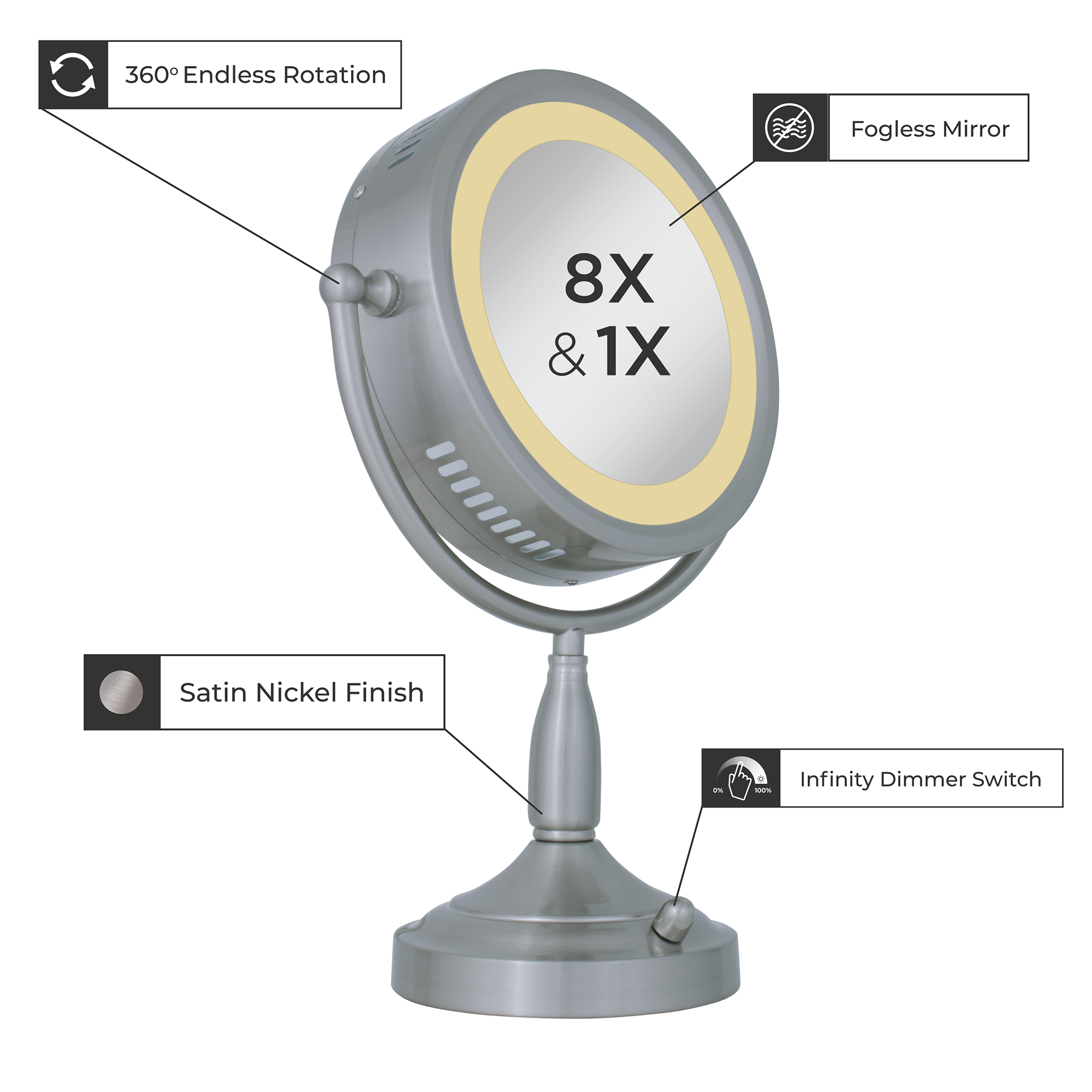 Zadro 11" Round Lighted Dual-Sided Mirror 8X/1X RDV68